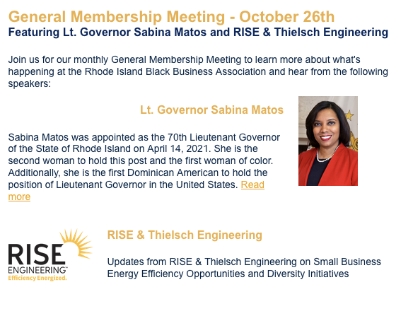 Join us for our monthly general membership meeting on October 26th from 6-7:30 pm to learn more about what's happening at RIBBA and hear from speakers about opportunities for you and your business to take advantage of.